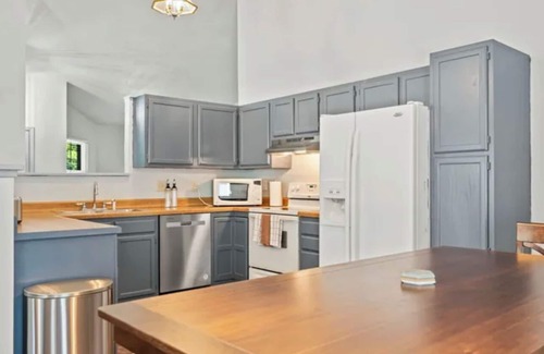 As soon as you step inside, you'll feel right at home. The open and airy living space features comfortable seating, plenty of natural light, and a flat-screen TV for all your entertainment needs. Whip up delicious meals in the fully equipped kitchen, complete with all the necessary appliances and cookware. Enjoy your meals in the adjacent dining area, which seats six and is perfect for hosting dinner or just enjoying a quiet night in.