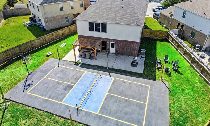 Gatsby Manor’s outdoor space features a sprawling backyard with a patio, BBQ grill area for outdoor gatherings under string lights and beautiful star lite skies. A Game of Pickleball waits for you and your guests to enjoy Ol' Sport.