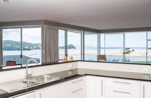 Enjoying a waterfront position, Roberts Retreat is a 4-bedroom 3-bathroom Mangawhai holiday home. Unwind in comfort with uninterrupted beach and harbour vistas!