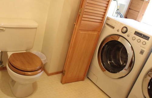 On the ground floor there is a full kitchen with the cooking essentials, a living room/dining room area, and a den. There is a half bath/laundry room combination, and the master suite with a king bed and a large bath tub with a separate shower. Upstairs you'll find two bedrooms with queen beds, a full bathroom, and an open loft area with two full beds.