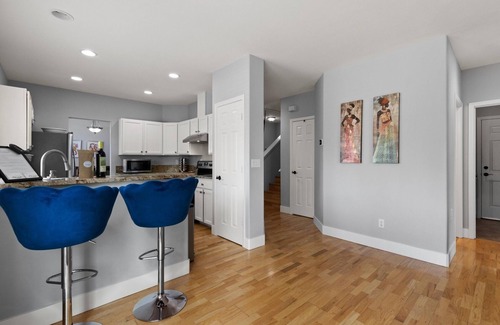 Pivotally located off of Brookswood Drive, this beautiful fully remodeled 2,120 sq. ft. home is the setting in which to experience all that Bend, Oregon has to offer. The beautifully decorated vacation home comfortably sleeps 10 guests with 5 unique bedrooms, all with thoughtful decor with plenty of color and flare with your comfort in mind. Four of the bedrooms are located on the upper level; the large, sunny king main suite with a large private on suite large bathroom with dual sinks, glass encased shower, large walk in closet and smart tv for your streaming. A second king bedroom is also located on the upper level, as well as queen bedroom, both with the guest bathroom in close proximity. Further down the hall is the bunk room, with two bunks, each with a twin beds over full beds, complete with a smart television with streaming capabilities, a foosball and whimsical decor.