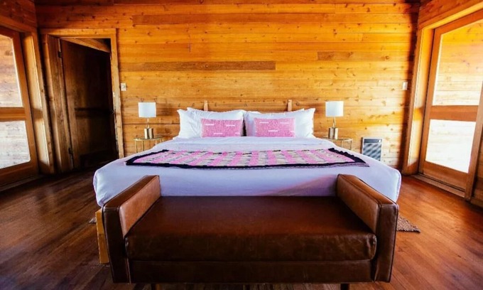 This rustic space, adorned with wooden furniture and a cozy fireplace, invites you to unwind and relax. Desert light and landscape serve as part of the interior design, naturally immersing the unit into its surroundings. The outdoor seating area lets you soak in the expansive outdoor spaces, designed for big nature and high adventure. Experience the air, light, and colors of the mountain desert under brilliant night skies, connecting deeply with the spirit of the American West.