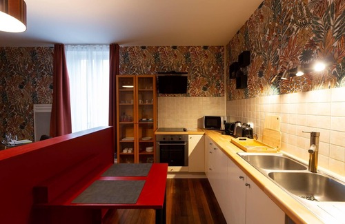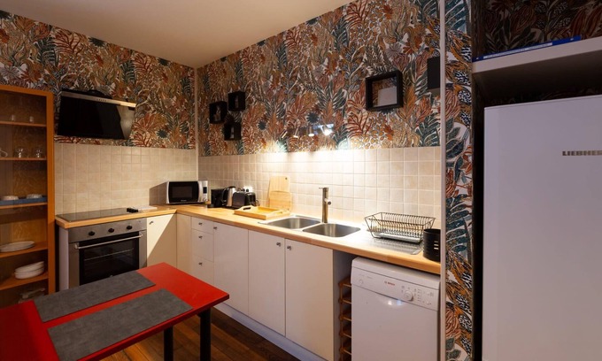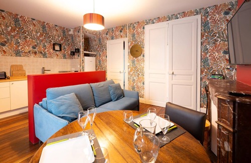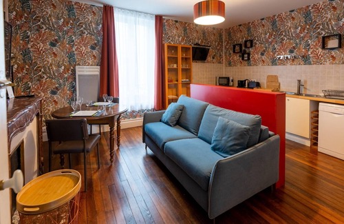 The accommodation is private during your entire stay. You will enjoy a chic and warm decoration including a condemned period fireplace, as well as a fully equipped kitchen. Located on the ground floor of a building, this flat is ideal for couples and professionals.