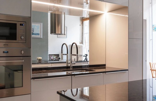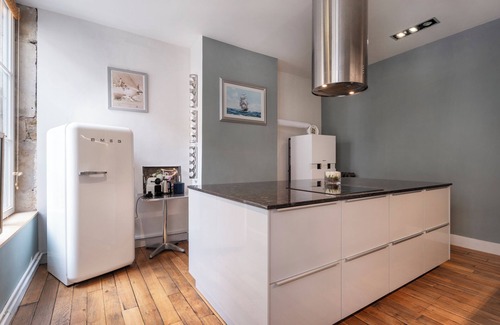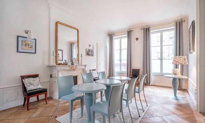 This chic, welcoming flat will win you over with its spaciousness and impressive high ceilings. Antique fireplaces add a touch of character, and the recent renovation has enhanced the warm, refined atmosphere. A former fashion show venue, this flat has retained a unique, sophisticated charm that will immerse you in a chic atmosphere.