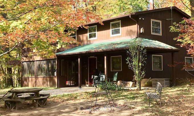 Very cozy cabin in the woods, hikers dream with over 40 acres of private property hiking trials as well as being adjacent to 70 acre Rock Stalls Nature Preserve.