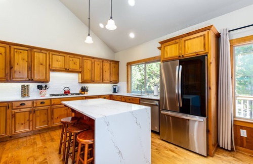 Bring the whole family together in this spacious and welcoming Sunriver home! With its soaring ceilings, warm wood accents, and cozy lodge-like feel, this retreat is designed for making lifelong memories—whether you're playing games by the fire, exploring the great outdoors, or unwinding in the private hot tub.