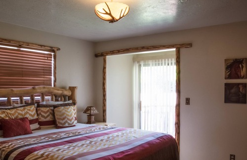 The lodge sits on 9.6 acres with two sides bordering on the Ranch's alfalfa fields. This is definitely farm and ranch country at its best. There's a large lawn area for games and sports, volleyball grass court, horseshoe court, cement basketball pad, small swimming pond with kayaks, cornhole boards, and large fire pit and picnic tables. The children will enjoy the playground area with swings and slides just for them. We have equipment for soccer, volleyball, whiffle ball, basketball, horseshoes, and cornhole. Whether you want to spend your entire time at the Ranch enjoying your own activities or use the Ranch as a home base to enjoy activities off-site, you’ll enjoy having such a large and beautiful place to comfortably gather. There is a two-night minimum stay, and there are no Sunday arrivals (but you can stay over on Sunday nights). Check in is between 2:00 and 8:00 p.m. Checkout is before 10:00 a.m. Guests are not allowed to bring their dogs or other pets.