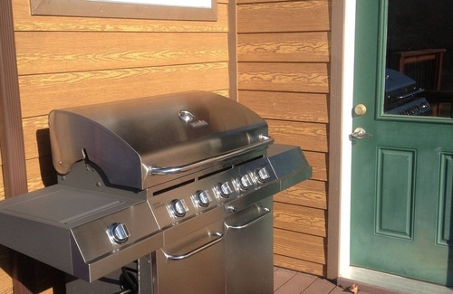 MAIN FLOOR- open Kitchen and dinning area. Wine Bar, Bedroom with 2 double beds, Bath and living area with large screen TV and gas fireplace. Double doors open to a fantastic deck that spans the front of the house, overlooking the lake. Complete with gas grill for Barbecuing.