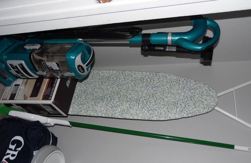 Livingroom - 2 Queen Size sleeper sofas with extra pillows, sheet set and blanket. Also has Queen size air mattress. Closet has Hairchair, Mop and bucket, Vaccum, Iron and Ironing board and broom and dustpan. 65 inch Smart TV with Roku for you to log into your own guest account. Workstation with desk lamp.