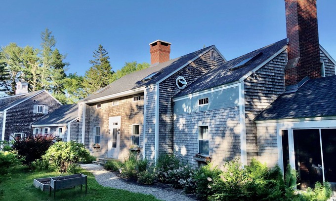 Anyone who has ever visited the Clark Island area of Saint George knows what a magical place it is at all times of the year. Quiet and out of the way but so close to the activities and events that happen in neighboring towns and cities like Tenants Harbor, Port Clyde, Rockland, Thomaston, Rockport and Camden. Rocky Bay is located on Scraggle Point Road – a rustic road winding through spiky conifers and ancient granite ledge. Scraggle Point juts out into Wheeler Bay (locally, also known as Wheeler’s Bay) where you see and hear all the things “Maine” that called you here in the first place. You will see sailboats glide by, lobster boats gear up in the early morning heading out into Muscongus Bay, paddle boarders explore the inner parts of the harbor; you will hear loons at dawn and dusk, hear the water ripple as schools of fish skim through the water, leaves rustle in the salty breeze…and not much else. Rocky Bay sits on 1.7 acres with 325 feet of waterfrontage and gives you little reason to leave during your visit. Inside, Designer Amy Dutton created serenely comfortable and chic living spaces and outside well, nature took care of that…uninterrupted and endless views of the open ocean from decks, patio and lawn areas. Think shaded Adirondack chairs under the canopy of leafy trees, lining the picnic table with newspaper in preparation for a late afternoon lobster bake and swinging on a swing with an unbeatable view. Rocky Bay has a private dock and float just steps from the front door; swim, fish, kayak, paddle board, dip your toes in the water…or bring your own boat for cruising the waters of Muscongus Bay (a deep water mooring is available for rent). A private beach on the property is a favorite feature of Rocky Bay; search for sea glass, collect rocks, look for sea life hidden under the seaweed or in tidal pools left behind as the tide goes out. There are 5 bedrooms (each are named for a flower or plant that can be found on the property) and 3.5 bathrooms– all equally appealing in both form and function – spread throughout Rocky Bay. The apartment over the garage has two bedrooms and bath. Then two bedrooms on the second floor of the main house and one bed and bath on the first floor. The house feels as good for 2 people as it does for 12. Morning coffee on the screen porch, outdoor play during the day and relaxing under the stars are just a few reasons to come to Rocky Bay. BOOKING NOTES: ALL RESERVATIONS REQUIRE GUEST DETAILS TO BE CONFIRMED BY PROPERTY MANAGER. RESERVATIONIST WILL CONTACT GUESTS WITHIN 24 HOURS.