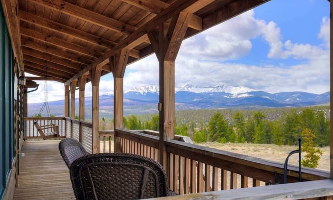 35 acre paradise, with 360 views! Come enjoy some of the best views in Park County surrounded by the Mosquito Range with it all to yourself. Hot Tub with a view! Easy access and within minutes to Fairplay. Only 32 miles to Breck. Fenced yard for the dogs, downstairs living room and pool table for the kids. Washer & Dryer available. Hot tub on its way! Come sit in the porch swing and enjoy this beautifully finished cabin in the heart of the Rockies.