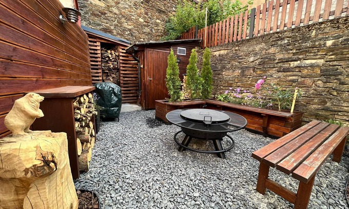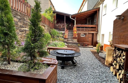 Apartments U Váhy are located in the spa town of Jáchymov and are suitable for families with children. Outdoor seating with a grill can be used all year round thanks to the gas heat radiator. There is a small garden with a sandpit for children, a whirlpool for 4 people FREE. Free parking in front of the house in summer for 3 cars and in winter for 2 cars.