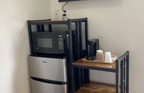 Come enjoy nature with our single bed motel style room with a full bathroom, right off the Rogue River. Discover the gorgeous landscape that surrounds this resort that is nestled between the mountains and the ocean. This room comes complete with its own private entry, a full bed, smart tv, Wi-Fi, mini fridge, coffee maker with coffee, and a microwave. You can see the Rogue River from your front deck.