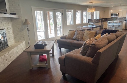 This stunning waterfront home with a private boat dock is the perfect getaway for large groups. With accommodation for up to 14 guests, it offers spacious living areas, breathtaking waterfront views, and a range of amenities. Enjoy direct access to the water, a fully equipped kitchen, multiple bedrooms and bathrooms, a great patio for outdoor dining and relaxation, and easy access to nearby attractions and activities. Immerse yourself in the beauty of the waterfront, complete with all the comforts and luxuries of home.