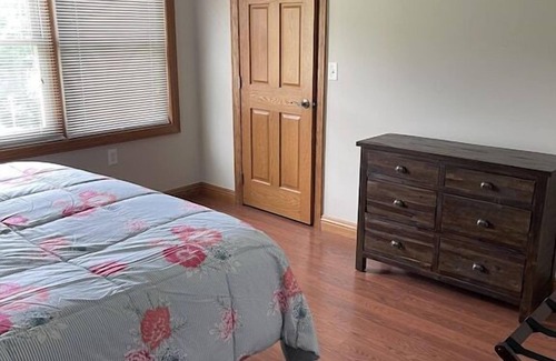Welcome to the rolling ridges of the Hocking Hills! This lodge is ideal for a large family, with open space for visiting both inside & out. Main floor has 2 private King bedrooms, 1 master bedroom with a King bed, a set of Queen bunks & an en- suite bathroom.