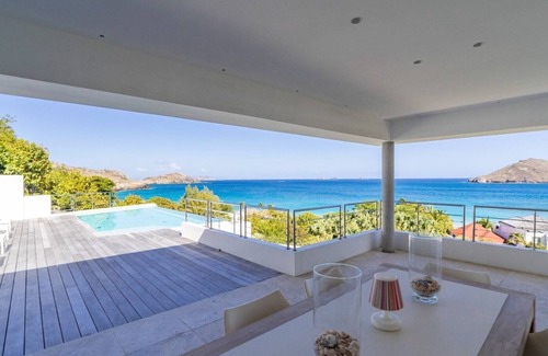 As soon as you step into this luxurious villa, you will be mesmerized by the sweeping view over the oceanand the island of Bonhomme. Everything melds nicely in a perfect harmony of elements between indoor and outdoor spaces. The light and uncluttered decoration brings about a total change of scenery in St-Barthelemy.