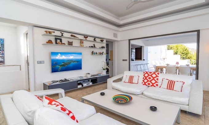 Built on the hills of Flamands, this sumptuous villaoffers a high range of services in a refined and modern atmosphere. Located only a few steps away from the Flamands beach and the famous 5-star Hotel Cheval Blanc - Isle de France, this charming property is built over two storeys and has an open-air and sleek design, making it the ideal place for unforgettable holidays in St-Barths.