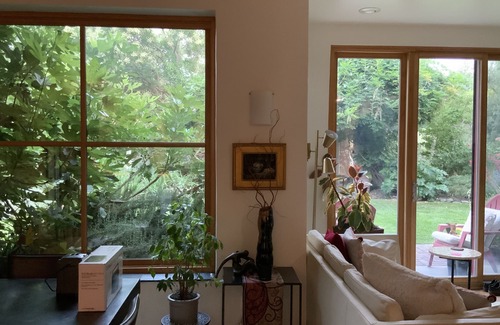 Beautifully appointed home with original artwork, stunning views of mountains and landscaped garden, close to walking trails, nature park, Bear Creek, chef’s kitchen , very comfortable furniture, study with dedicated workspace in den as well as second bedroom along with Smart TV with Netflix, HBO, Amazon Prime and more. Garden has two pergolas with dining area and sofa’s. Walking distance to town, coffee shops, parks etc and infrared sauna and peloton stationary bike.