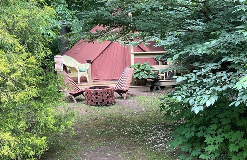 Of course, it goes without saying, Please be considerate and clean up after yourselves. No smoking cigarettes or e-cigarette, vapes in the tent. If you need to bring a pet, please ask us first as they must be well-trained and not have an issue with cats or other dogs as we have 3 cats. Pets are NOT allowed to go to the bathroom on the lawn or in the gardens. They must either go in the woods or in the designated area for this. Please clean up after your pet if in the designated area. Ask us for how and where.