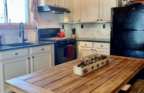 The cabin is a rustic yet charming fully remodeled four season home with modern amenities. It is well maintained, clean, comfortable and spacious. 2 Bedrooms with comfy queen beds tastefully decorated, 1 full bathroom with tub and shower, newly renovated. New granite countertops in kitchen, with new cabinets. New flooring throughout. 3-season newly renovated knotty pine enclosed porch with Adirondack chairs to enjoy your morning coffee overlooking the brook. Great room features vaulted ceilings and has a brand new Vermont Castings propane stove to keep you warm during winter and cold nights. Fully equipped kitchen with gas stove, microwave, refrigerator, toaster, high-end cookware, utensils, coffee pot.
