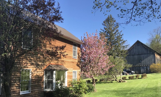 A super spacious FOUR room comfortable cozy getaway with swimming pool (seasonal) awaits at this characterful 1880’s Homestead on 14 peaceful acres. Set on the hills above Canandaigua Lake and an array of amenities/attractions in Canandaigua and Naples, lake access just down the hill. Thoughtfully apportioned annex to provide an ENTIRELY DEDICATED 2-story space with it’s own entrance, outdoor seating area, lawns, trails and campfire. Combine remote working with a getaway. Sanitized, super-clean, sanctuary ideal for a couple!