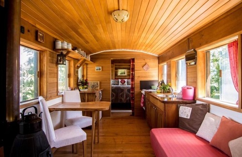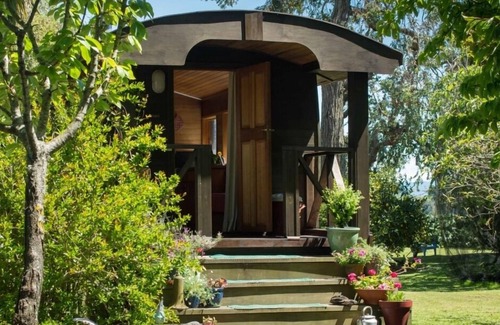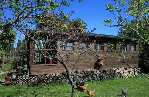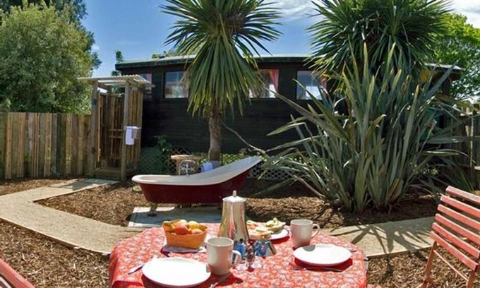 The Caboose is a handcrafted replica of an old train carriage, with a small private garden. Set on a small lifestyle property next to our historic farmhouse, only 5 minutes drive from the beach and Takaka township.