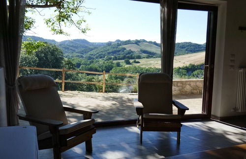 Sheltered behind by centuries old oaks, the views from the house are breathtaking, looking up to the Valley of the Calanchi, with woods, streams and open pastures in the foreground, giving way to the white cliffs of the Calanchi in the distance. Facing directly west, the sunsets have to be seen to be believed.