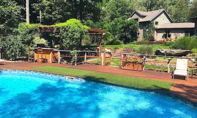 The 18'x36' heated saline pool features deliciously soft water and is guaranteed to be open from Memorial Day to Labor Day, with September access subject to weather conditions (please note). There's also a poolside Mediterranean-style pergola with a gas grill, refrigerator and bluestone bar so you can enjoy a casually shaded mid-day lunch or dine in rustic luxury under the stars.