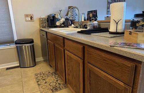 Our home is a great place to create special memories. There is a bedroom upstairs with a king-sized bed, a bonus room off the bedroom for one small child or to read, and a queen-sized canopy bed downstairs. There are two full bathrooms.