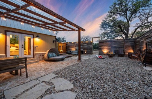 Romantic Tiny Luxury Retreat w heated pool, sauna n outdoor shower in Wimberley 10 acres is a recently renovated villa in Wimberley where guests can make the most of the garden and barbecue facilities. This property offers a private pool, free Wifi, and free private parking. Guests have access to a sauna and hot tub. Featuring a patio with garden views, this villa also includes a flat-screen TV, a well-equipped kitchen with a dishwasher, an oven, and a microwave, as well as 1 bathroom with a walk-in shower and bathrobes. The property has an outdoor dining area. Texas State University is 24 miles from the villa, while Schlitterbahn Waterpark Resort is 31 miles from the property. Austin-Bergstrom International Airport is 38 miles away.