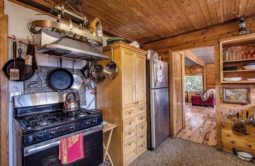 This cabin was made in another era with natural materials locally sourced ! when people read books by the fire with a cup of warm brew and taking in the quietness You do NOT use your phone to turn on the so-called smart appliances or codes to open the door you interact with the wood fire, Gas oven controls manually ceiling fans manually
