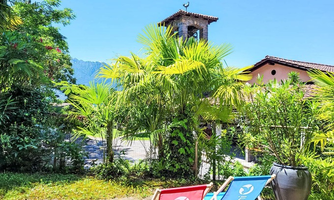San Nazzaro / Vairano 17 km from Locarno: The holiday apartment has direct and private access to the lake with lawn and parking in Vira, about 3 km away. Beautiful 2-family house "Casa Ronchitt", 2 storeys, terraced. On the outskirts, in a quiet, sunny, elevated position, 500 m from the lake, from the beach, in a cul-de-sac. Private: garden 50 m2. Garden furniture. Motor access to the house. Stepped path (15 steps) to the house. Parking at the house. Grocery 2.6 km, supermarket 10 km, shopping centre 12 km, restaurant 100 m, pebble beach "öffentlicher Badeplatz" 500 m, lake Lago Maggiore- Privater Seeplatz 3.1 km. Nearby attractions: Parco Botanico, Piazzogna, Mercato: Ascona, Locarno, Bellizona, Mercato: Luino IT, Ponte Tresa IT, Castelli di Bellinzona. Well-known lakes can easily be reached: Lago Maggiore, Lago di Lugano, Lago di Orta IT. Hiking paths: Monte Gambarogno, Monte Tamaro, Monte Lema, Valle Verzasca, Valle Maggia. Please note: no lift. Baby equipment on request (extra).