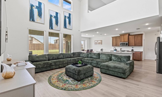 Spacious Rooftop Bliss 4BR/3.5BA home perfect for families or groups! Enjoy a huge living room, private office, fun game room, Baby crib, and a massive backyard for outdoor fun. Relax in comfort with modern amenities, a fully equipped kitchen, and a 2-car garage. Ideal for work or play, with plenty of space to spread out and make lasting memories.