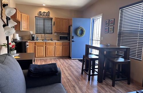 There is a full size refrigerator, single burner induction cook top, Keurig coffee machine, counter top convection oven and microwave for your convenience. The kitchen is stocked with dinnerware, basic utensils and coffee necessities. The casita is equipped with Wi-Fi. You will need a pool key to access the tennis courts, pools, and fenced in play area for tots. Pool key is available upon request. There is a keyless entry into the casita for convenience. There are fruit trees on the property which produce delicious fruit when in season (pomegranates, lemons, limes and oranges).
