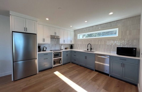This unit features a full size kitchen with fridge, dishwasher, induction cooktop and toaster oven. There is also a BBQ for use on the patio. The are 2 full size bathrooms (1 is ensuite), in unit washer & dryer, wifi, off street parking and private access. Bedroom 2 can be 1 king or 2x twin- please advise your preference when booking.
