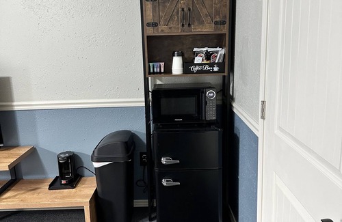 Room 14, Caribou Crossing Motel. Newly renovated room. All brand new furniture and fixtures. Fresh new linens. Mini fridge, microwave and coffee provided in room. Rooms are not refreshed daily. Fresh towels provided in room, and access to clean towels in laundry room for switching out at leisure. We are a contactless room. No front desk. Upon booking you will receive the door code for the keyless entry. Large parking lot, with ample parking. Walking distance from Main St Walden, food and stores.