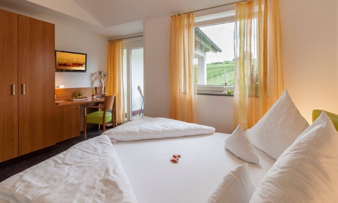 The classic double room 206 is located on the 2nd floor with a view of the extensive vineyards. Bright and cozy colors create a feel-good atmosphere, making you feel completely at ease and offering you an unmistakable ambience.