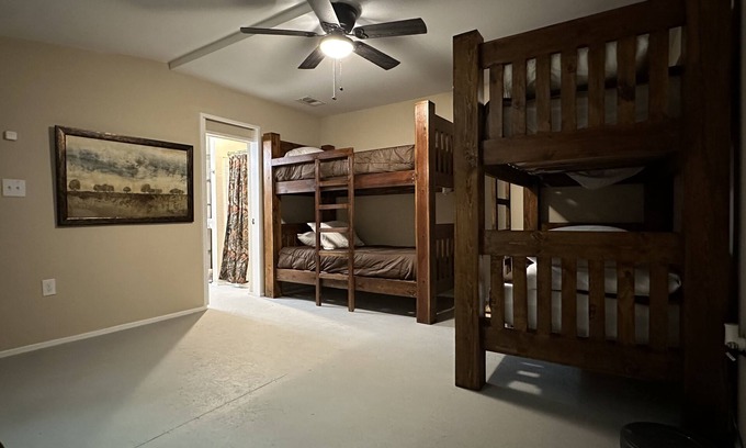 Country retreat located on a quail farm located just 20 minutes from the heart of downtown Waxahachie & 25 minutes from the Texas Motorplex. Quail hunts are offered on location during hunting season. There are 6 bedrooms with their own private bathrooms located on the property. Kitchen, washer, dryer & game room are shared with other guests. Perfect for couples or families.