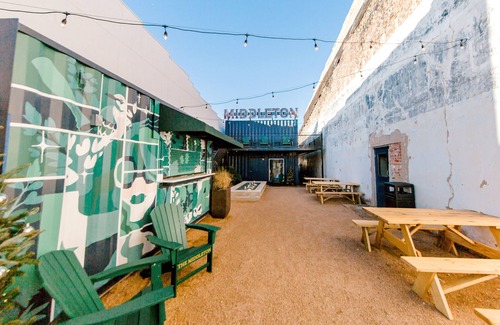 The Middleton is a boutique hotel featuring 16 rooms created on a historic property with modern construction and design elements. Utilizing shipping containers, each room has an upscale vibe with original artwork from all over the world. The courtyard features outdoor seating with food service, a fountain and balcony overlooking the downtown square. The adjacent bar serves signature cocktails, wine and craft beer in a classic yet sophisticated setting.