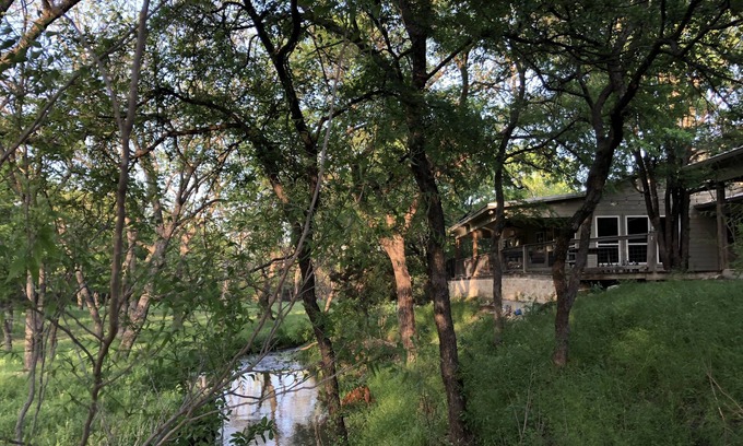 Spacious multi-acre country retreat on Wallace Creek 5 miles outside of San Saba. There are two homes with full kitchens and plenty of space for all. Get away from the city and enjoy the sights and sounds of Central Texas country living. Tons of wildlife, see the stars at night, build a fire and sit on the large back porch overlooking the sounds of the creek rushing by. With enough beds to sleep 22 and over 4,300 square feet of living space your whole group will have plenty of space for the getaway. One home has four bedrooms that can sleep 17 (12 beds) and two full baths. The other home has two bedrooms (one queen/one king) and two full baths.