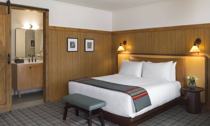 With the perfect balance of adventure and relaxation, our lodge-style retreat is where modern amenities meet the rustic charm of the great outdoors. This spacious room offers the perfect ambiance after a day of adventure! Kick off your boots and enjoy our lively saloon, unwind by the cozy fire pits, or take a refreshing dip in the all-season pool. If you’re hankering for an authentic dining experience, mosey on over to our on-site restaurant for a night of hearty eats, cocktails, and toe-tapping entertainment. Whether it's the stunning landscapes or the vibrant lodge atmosphere, every moment here is unforgettable.