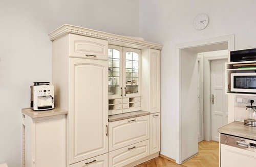 While you're here, you can enjoy all the comforts of home and more, including a refrigerator and an oven, as well as a stovetop and a dishwasher. Other amenities include laundry facilities, towels, slippers, and kitchenware and utensils.