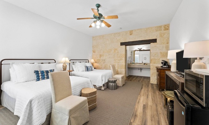 Room with Two Queen Beds, microwave, mini-fridge, gas fireplace and porch is located in Comfort. Room with Two Queen Beds, microwave, mini-fridge, gas fireplace and porch provides accommodation, featuring Security/Safety, Child Friendly, among other amenities. This Hotel features Security/Safety, Child Friendly, to make your stay a comfortable one.
