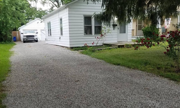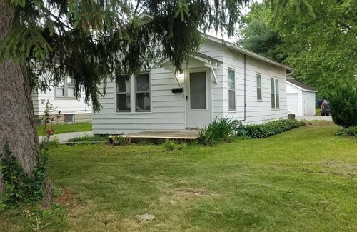This is a "mother-in-law" type of house built on a property where the big house is rented to long term tenants. I have furnished the house to be comfortable for my husband and I when we visit Ohio ... with a little extra sleeping space for a child or grandchild to stay with us. Hi-Speed Internet, Smart TVs and small desk with monitor provided. The bedroom has a king sized bed and a small closet. The updated bathroom (with a bidet) is located in the bedroom but has it's own door. The living room is very roomy with a small front entryway and closet. There are 2 twin beds stacked to serve as additional seating in the living room until needed. There is a kitchen and a separate dining area with seating for 6. Linens, pillows, blankets, bath towels, kitchen towels, and kitchenware, including coffee maker, microwave and toaster are all provided. There is also a small washer/dryer combo between the dining room and kitchen. Ceiling fans in all rooms except kitchen.