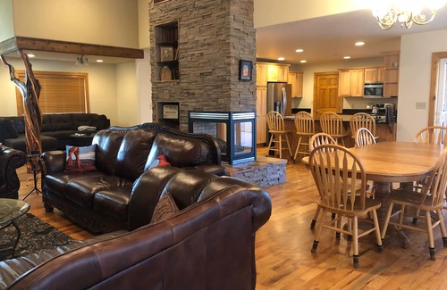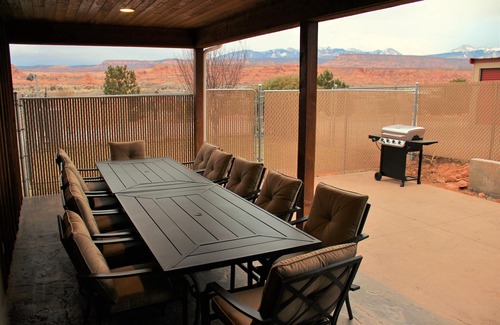 This large, private home is the perfect place to social distance and escape to nature! Phenomenal location just five minutes from the Pipe Dream Trail & Moab Golf Course. Parking for Jeeps, trailers, and toys, secured bike storage in the garage, and plenty of room for large groups. This home provides ample dining space indoors and out, a pool table, and two living areas that are perfect for big groups. Allows an escape from the hustle and bustle of downtown Moab while still within five minutes of most amenities. The perfect place to relax in Moab, with a large hot tub to relax in.