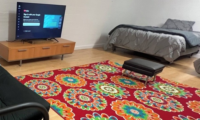 You’ll love this newly remodeled private lower floor of our home. Huge rooms, 4 queen beds, large bathroom with huge bathtub and shower. This space has a small kitchenette, huge living room with fireplace, futon and 55 inch TV.