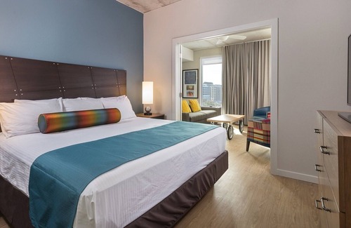 The Austin Studio Deluxe suite offers a blend of comfort and convenience for travelers seeking a taste of the vibrant city life.