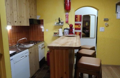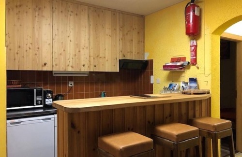 4-room apartment 80 m2, lower ground floor. Very simple furnishings: small dining room. Open small lounge with cable TV. 1 room with 1 french bed (140 cm, length 200 cm). 1 room with 1 bed and 1 x 2 bunk beds. 1 room with 2 beds with 1 bed and 1 french bed (160 cm, length 200 cm). Small, open kitchen (4 hot plates, oven, dishwasher, microwave, fondue Set (cheese)) with bar. Shower, shower/WC, sep. WC. Facilities: Internet (WiFi). Please note: apartment courtyard side. Non-smokers only. Fire extinguisher. The flat has no view, basement windows, 2nd living room with DVD is outside the flat. Private ski room.