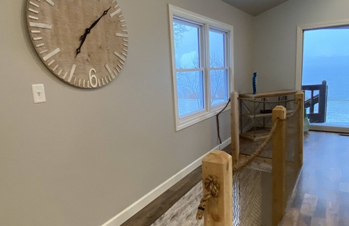 Beautiful 1900 sq. ft 120 ft. Lake front cottage on Rose Lake, also known as Lake of the Woods. Pontoon boat included with cottage rental! The pontoon is a 2011 Avalon that seats 10. The boat is equipped with 10 life vest. Dock space for your extras: speedboat/jet ski etc. Sleeps 10, Master/King with spectacular lake view, open to master bath with double sink and walk in closet. 2nd bedroom/queen, 3rd bedroom double bunks (sleeps 4). 2nd full bath with tub/shower. Laundry room with new washer/dryer, with attached half bath. Kitchen has a large island, dishwasher, microwave, range oven/stove top, large refrigerator and is open to family area with large sectional/sleeper sofa. Great views of lake from family area with sliding door entry to upper level deck. Our basement is an additional entertainment area/game room which includes a foosball table, table/chairs with a beach theme to relax in after a long day on the lake! Two kayaks, one paddle board and access to: Gaga ball pit, volleyball net, and boat ramp. Towels and bedding included.