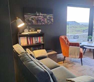 Rose Meadow Lodge is located in Liscannor, just 29 miles from Dromoland Castle and 10 miles from Doolin Cave. The apartment, set in a building dating from 2022, is 3.9 miles from Cliffs of Moher and 29 miles from Dromoland Golf Course. There's a sun terrace and guests can use free Wifi and free private parking. Offering a patio and sea views, the apartment includes 1 bedroom, a living room, satellite flat-screen TV, an equipped kitchen, and 1 bathroom with a shower. Towels and bed linen are featured in the apartment. The property has an outdoor dining area. The apartment has a picnic area where you can spend the day outdoors. Shannon Airport is 37 miles away.
